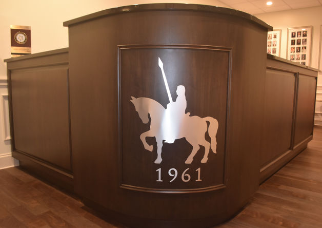 Description: This custom Maitre D Stand was built for installation at the Chartwell Country Club in Severna Park, Maryland. The elegant, curved front was made to blend with the walnut of the entire desk, showing the distinguished logo for the Chartwell Country Club.
